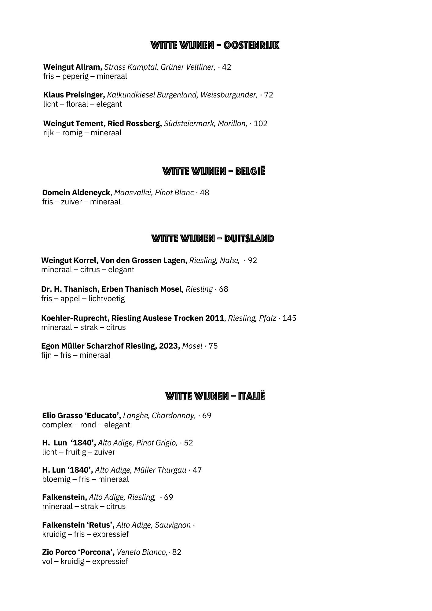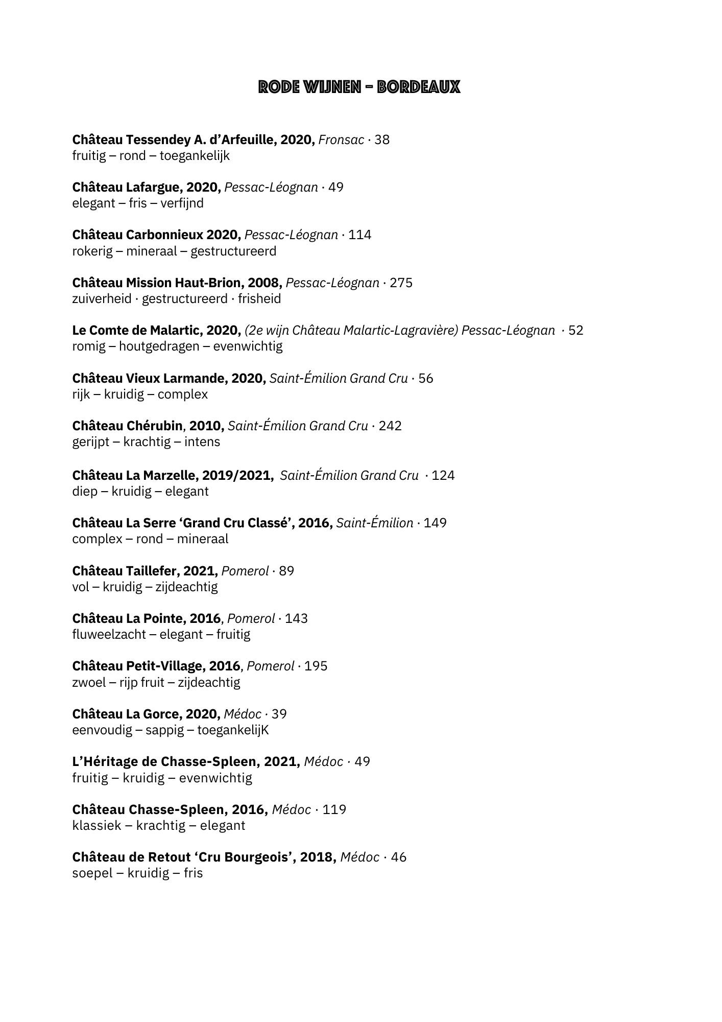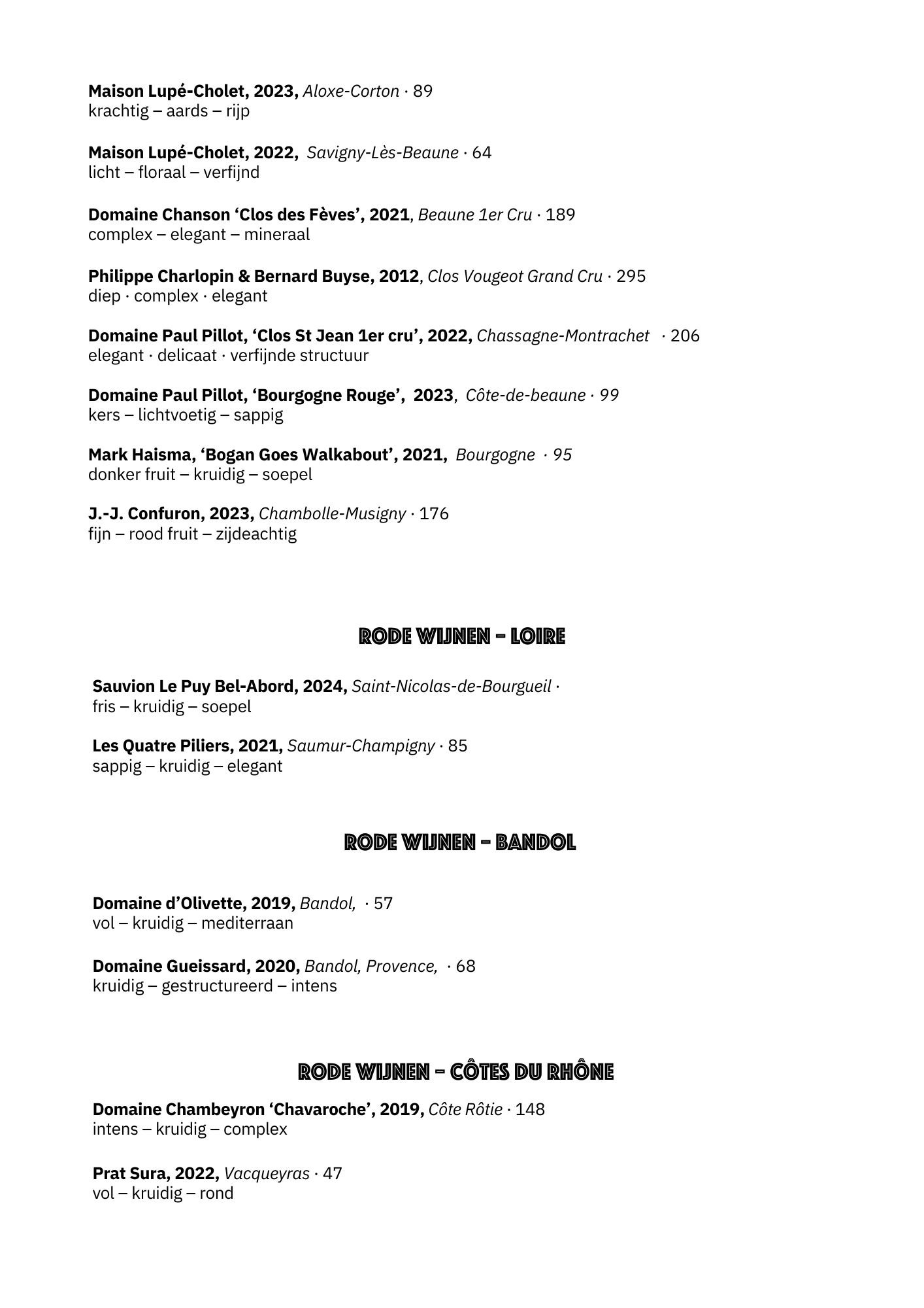 Wijnkaart